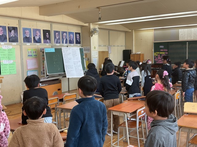 次は「サーカスのライオン」。なんか聞いたことがあるタイトル。3年生の国語で習った「サーカスのライオン」。なんとオペレッタの練習をしていました。みんなストーリーは知っているので、その場面を思い浮かべながら歌っていました。3年生ですが、とても綺麗な歌声で歌うことができていて、素敵です。参観で披露するみたいですので、楽しみですね。