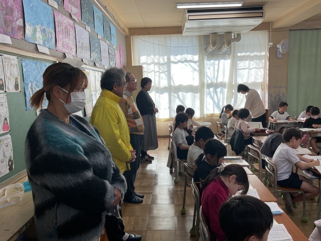 全クラスの授業の様子を観ていただきました。5年生がちょうど一人ずつ発表する時間にあたり、一人ひとりが自分の考えを発表する力は今後とても必要な力。そのような力を学年に応じて育んでいることを褒めていただきました。