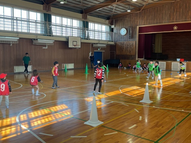 異学年合同チームの中で役割分担を決めたり、声を掛け合ったりしながらゲームを進めていました。