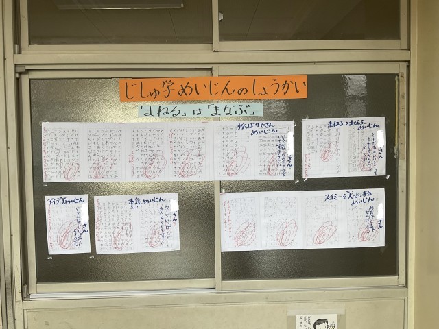 とっても頑張っているので〇〇名人がたくさん誕生しています。他の人がどんなことをしているのかを見て、私もこれをやってみよう!こんなこともいいのか、じゃあ、次は△△をやってみよう!と「まねる」ことから「学ぶ」を実践しています。