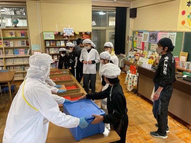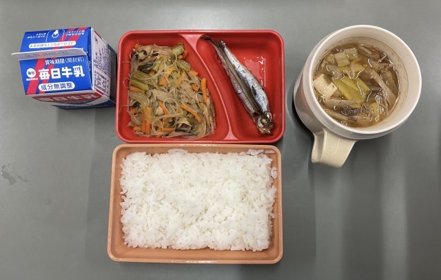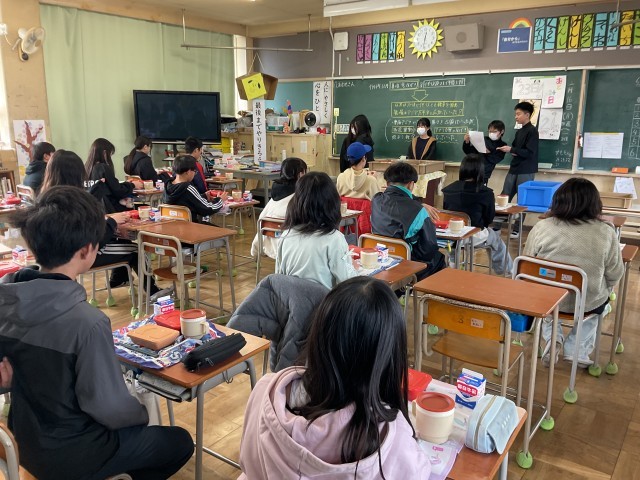 6年生と6年生の保護者に向けて、中学校の給食試食会が行われました。大おかずがすき焼き、小おかずがししゃもと春雨の炒め物、ご飯です。小学校とは違って、ランチボックスに全てが入った状態でした。保護者のみなさまは、量の多さにびっくりされていました。6年生のみんなは「熱いけど、美味しい」と言いながら、笑顔で食べていました。