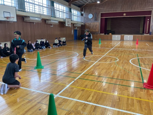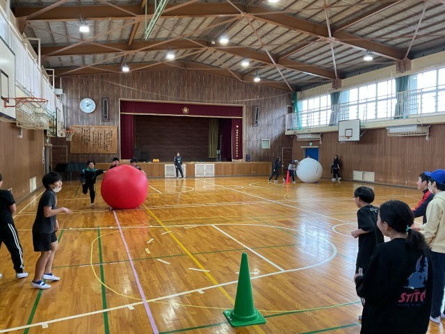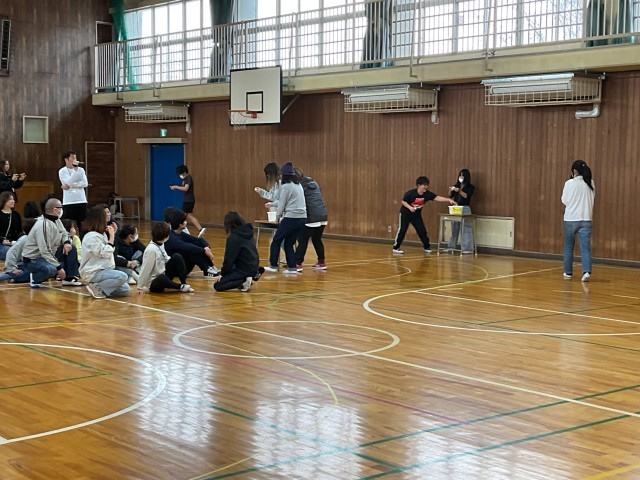 6年の学年行事が体育館で行われました。入り口を入ってすぐの場所に、保護者が小学校6年間の思い出をまとめ、それが掲示されていました。オジラ体操で身体をしっかりと整えて、まずは、大玉転がしです。大人と児童の対決で、「頑張れ」という応援が体育館いっぱいに広がっていました。その後、借り物競争です。バスケットボールでドリブルしたり、〇〇の人を探したり、大忙しです。次に、⭕️❌クイズです。なかなかマニアックなクイズで全問正解を阻止しようとしてきました。玉入れまでで、大人2勝、児童2勝の引き分けとなり、最後のリレーとなりました。児童のバトンパスがどんどん上手くなっていき、最後には児童の勝利となりました。大人も児童も一緒になって大盛り上がりでした。