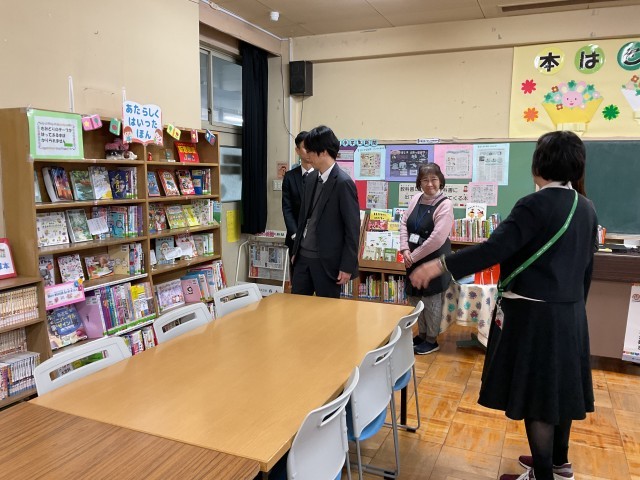 寄贈された書籍は、「新しく入った本」のコーナーに置かれていて、たくさんの子どもが手に取っている様子や、本校で行なっている読書活動の取り組み、図書委員の活動の様子を報告しました。