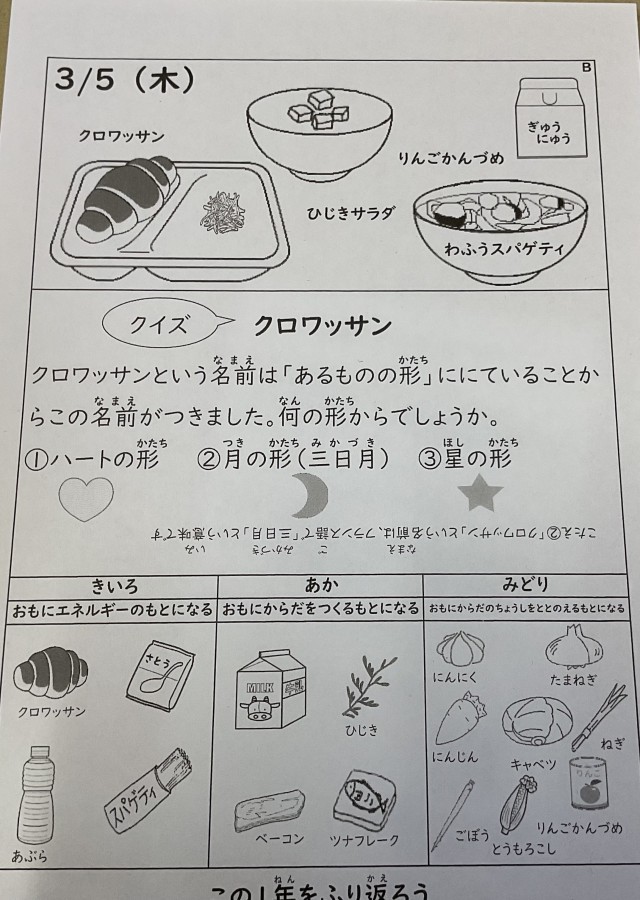 3/5(木) 今日の給食は‥‥