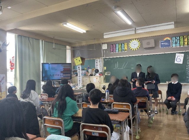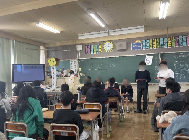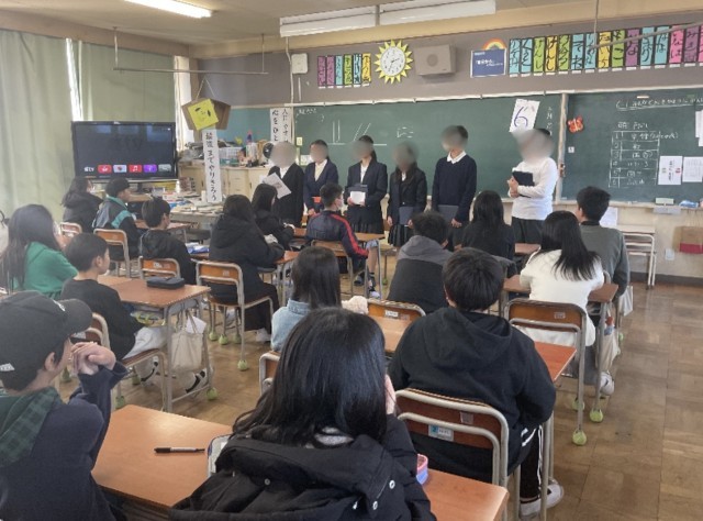 山田東小出身の山田中学校1年生6人が、もうすぐ中学生になる6年生の質問に答えるために、山田東小学校を訪問してくれました。