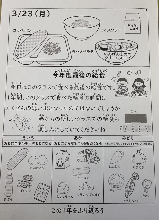 3/23(月) 今年度最後の給食