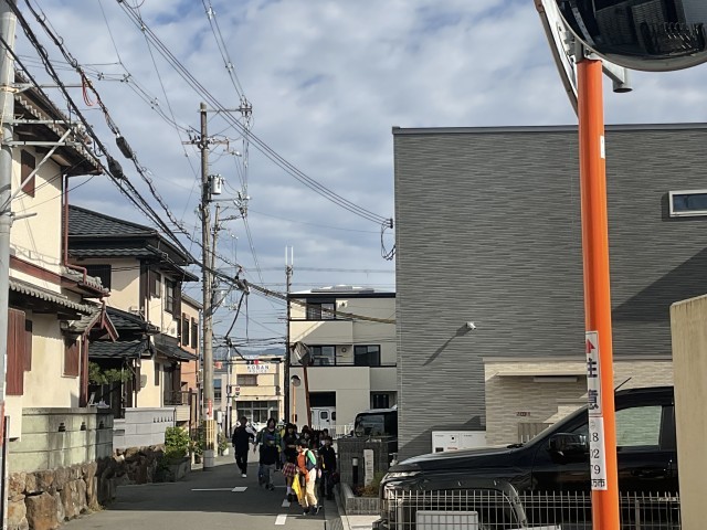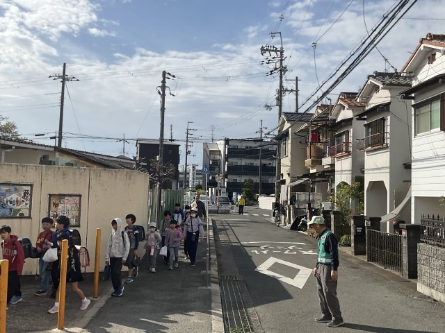 教職員も地域の方と一緒に子どもの登校を見守っています。新たに1年生も登校班のメンバーに加わり、班長さんも班員たちを気遣いながら学校まで登校してくれています。