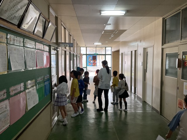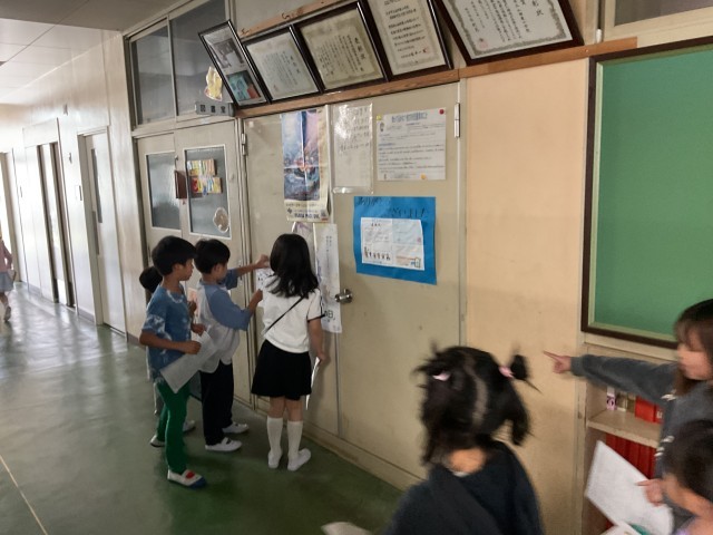 2限目に1年生と2年生合同で、学校探検をしました。