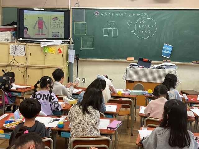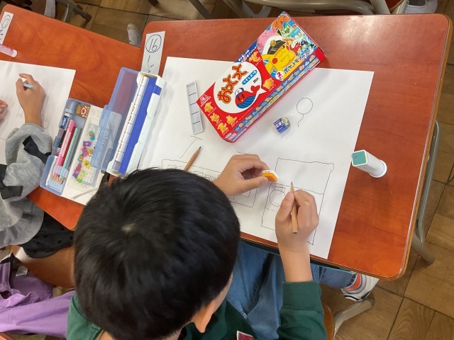 様々な物の形を写して、楽しそうに絵を描いていました。