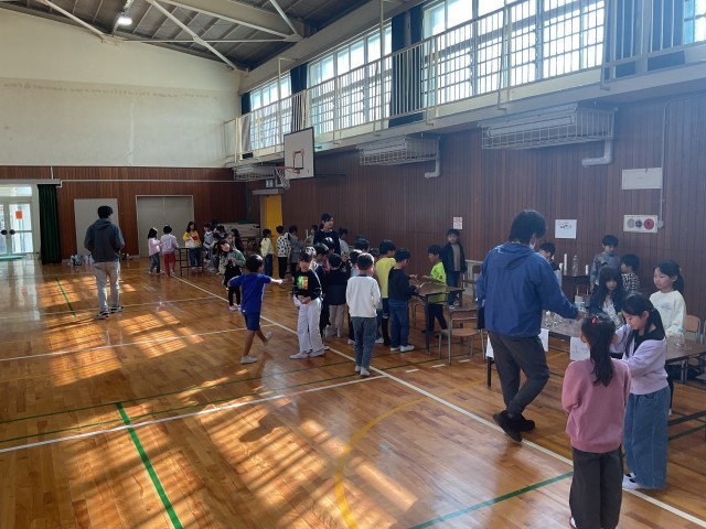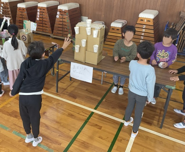 2時間目、体育館がにぎやかな「おもちゃランド」に変身しました。