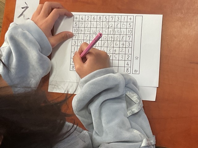 12月9日(火)1年生 授業の様子 公開日 2025/12/09 更新日 2025/12/09 学校の様子 足し算の百マス計算にチャレンジ!時間を測りながら、集中して取り組んでいます。百マス計算は昨日から始めていて、「昨日のタイムより速く正確に!」と目標をもって、楽しみながら計算力を伸ばしています。 いいね(0)