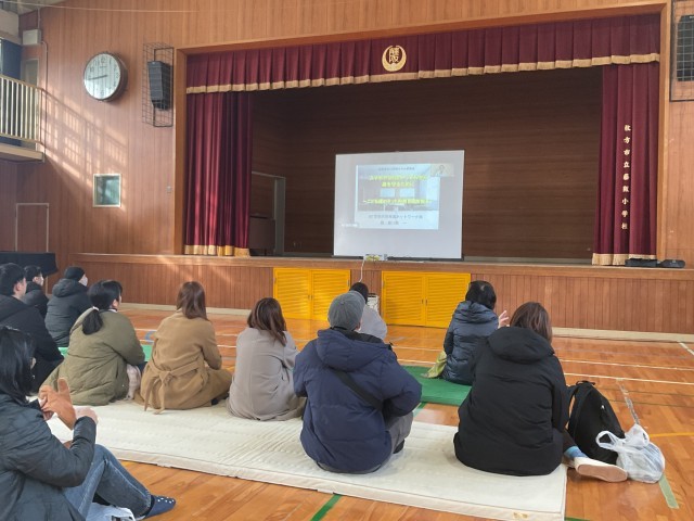 土曜日の授業参観日の1時間目を活用し、体育館で情報モラル講演会(動画視聴)を行いました。