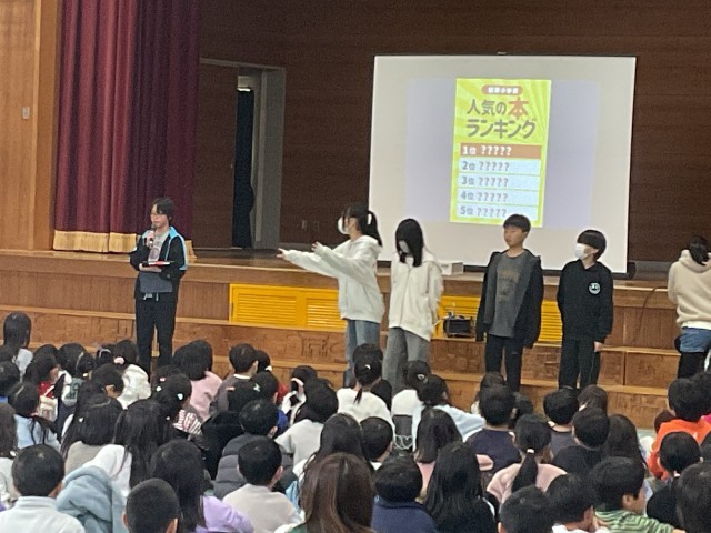 3月4日(火)児童集会 公開日 2026/03/04 更新日 2026/03/04 学校の様子 ①校長先生より「終わりを大切にしましょう」というお話がありました。②児童会より今月の目標発表「自分史上最高の姿でゴールしょう」③図書委員今年の貸出ランキング発表がありました。どんどん本を読みましょう!④掲示委員「6年生に、お花を折ろう!」という呼びかけがありました。⑤生徒指導担当よりいじめ問題についてのお話がありました。あなたの行動が未来を変える。 +1 いいね(0)