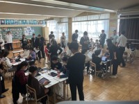 マット運動を種目ごとに場所を決め、時間を区切り班ごとにローテーションしていきます。
