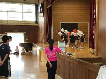 各班ごとに最初の挨拶から演技を通し、合格するまで何回も挑戦するようです。挨拶の段階で不合格の班もあり、まだ、最後まで通した班はないようです。