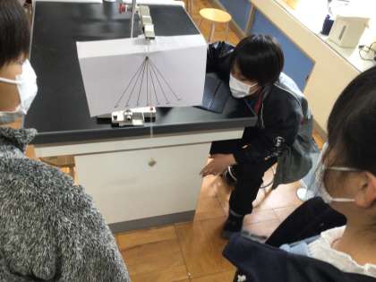 5年生理科 教職員相互授業参観の模様 公開日 2022/12/05 更新日 2022/12/05 学校の様子 振り子のきまりの単元で、おもりの重さを変えたら振り子の動きはどう変わるかの実験をしました。 実験前の予想では半数の児童が重さが増すほどスピードが上がるとしていましたが、実験後の考察で振り子の動きは重さに関係がないことを学びました。 いいね(0)
