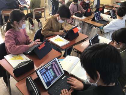 5年生 教職員相互授業参観の模様 公開日 2022/12/15 更新日 2022/12/15 学校の様子 国語の「反対意見を予想して考える」ことをめあてにタブレットを活用し、欠席者もタブレットを介してのグループワークにも参加していました。画面上でのデイベートのようでした。 いいね(0)