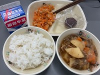 5月23日(木)給食の献立 公開日 2024/05/23 更新日 2024/05/23 学校の様子 ご飯 牛乳 じゃがいももちのおつゆ 豚丼 切干大根とツナの炒め物 豚丼のえんどう豆は、昨日2年生がさやむきをしてくれた豆です。 いいね(0)