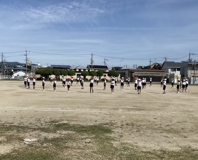 運動場でダンスを踊る場所を確かめました。今日は曇り気味で日差しも少しだけ秋に近よったようです。