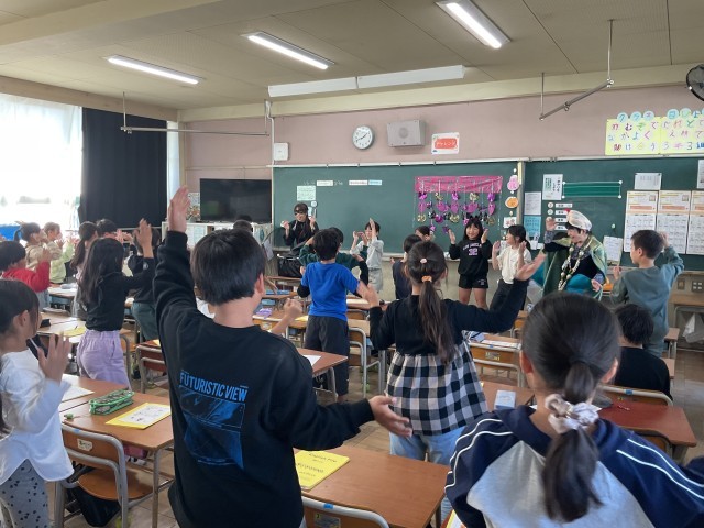 今日の外国語、英語の授業は恐ろしいことに「魔女」が授業をしました。そして先生たちもドラキュラなどに変身させられました。というハロウィーンバージョンの外国語の授業になりました。子どもたちはいつもより更に楽しく授業を受けていました。