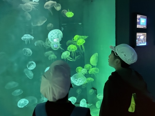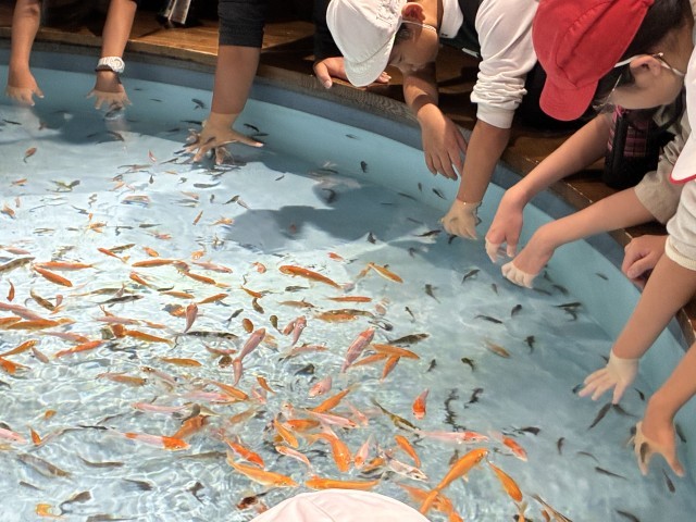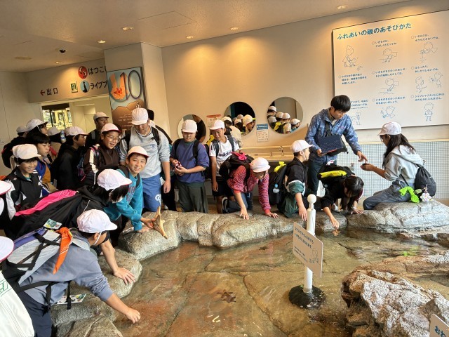 修学旅行2日目も雨のスタートでした。しかし、朝ごはんを済ませ水族館に向かう時間には良いお天気になりました。