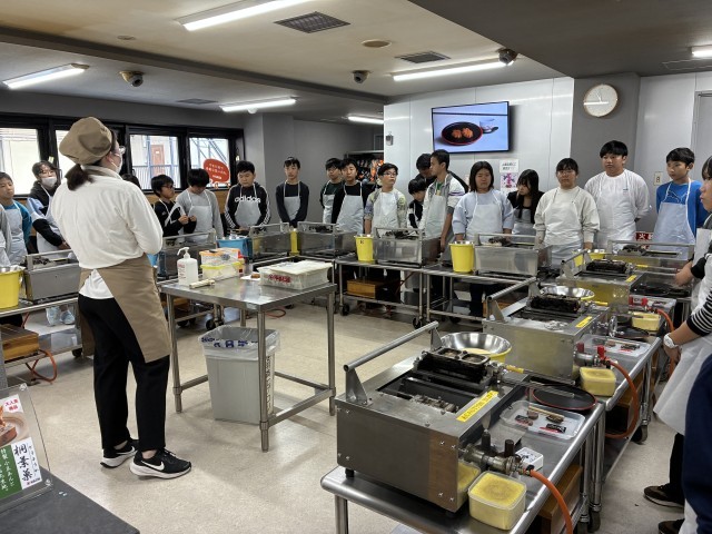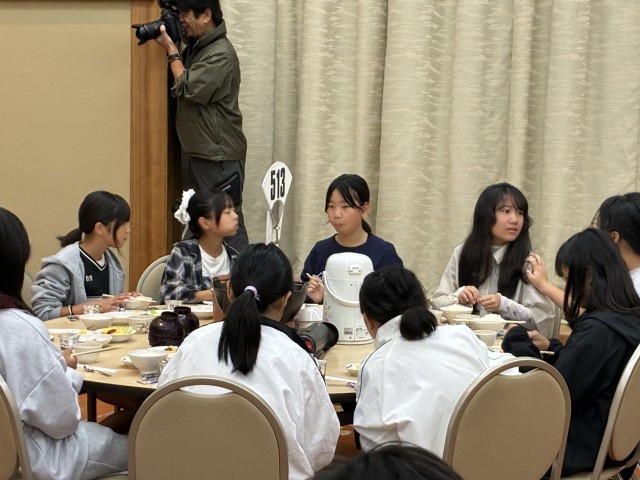 商店街での食べ歩きとお土産購入、もみじ饅頭作りをしました。昼食前なのに、よく食べていたようです。昼食はカツカレー。残るかなと思いましたが、思ったほどでは有馬すぇんでした。よく食べ元気な6年生です。