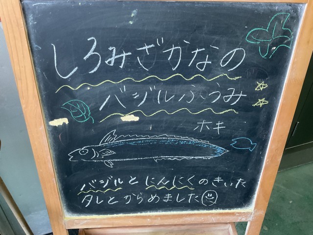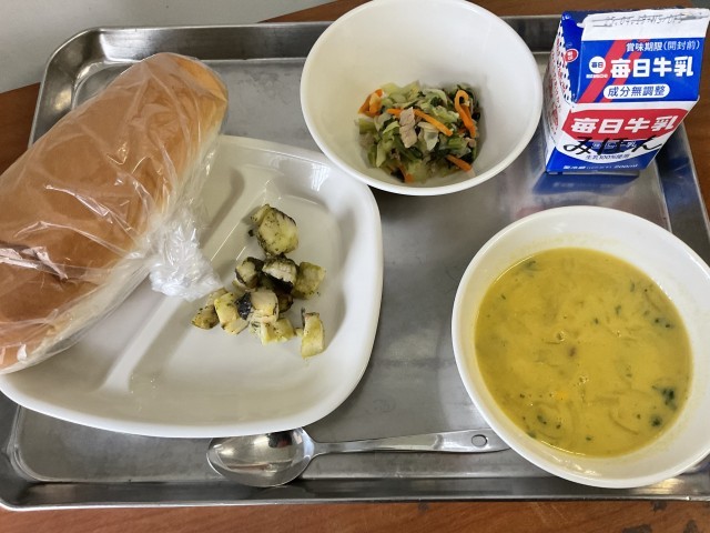 今日のメニューは「コッペパン」「牛乳」「とうもろこしスープ」「白身魚のバジル風味」「青梗菜の炒め物」でした。魚嫌いな子もバジルのいい香りで魚も食べやすかったと思います。