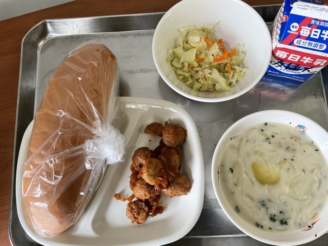 今日のメニューは「コッペパン」「牛乳」「インゲン豆のクリームスープ」「肉ボール」「ラハノサラタ」でした。ラハノサラタのことをずっとラハノサラダと思っていました。サラタとはギリシャ語でサラダのことらしいです。