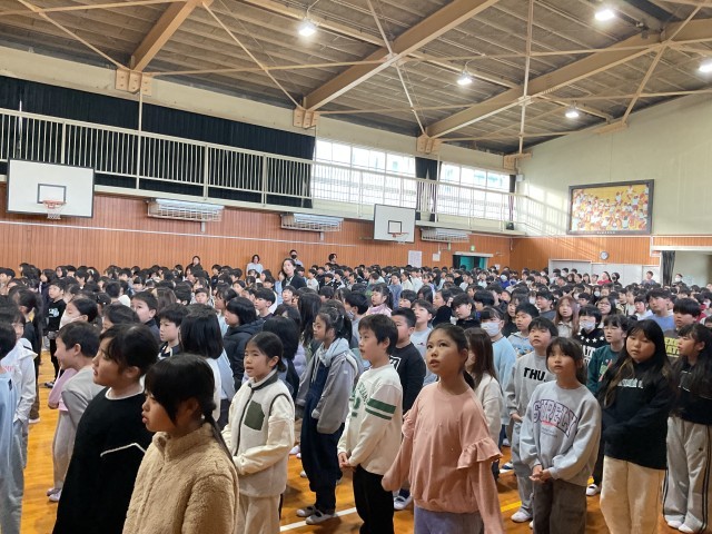 3学期の始業式でした。校長先生からは十二支のお話をしました。生活指導からはルールを守って成長しよう、チャイム席を守ろう、みんなの時間を大切にしようというお話でした。