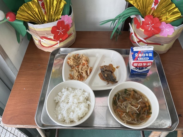 今日のメニューは「ご飯」「牛乳」「玉ねぎのお汁」「揚げサワラの味噌味」「切干大根の煮物」でした。」さわらの味噌味はパリッとして、味噌味がしっかりと効いていました。