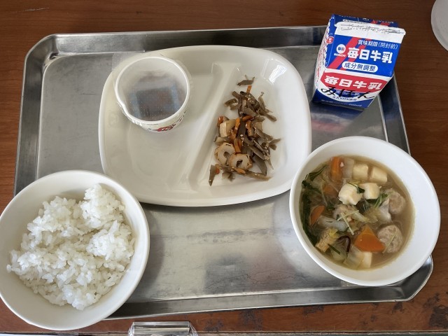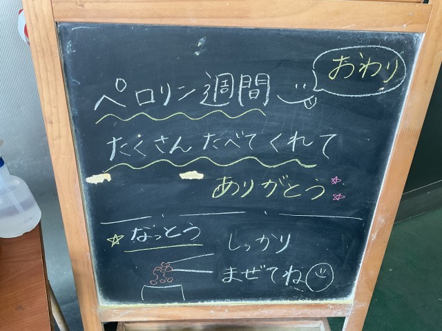 今日のメニューは「ご飯」「牛乳」「ちゃんこ」「ごぼうのきんぴら」「納豆」でした。先週のペロリン大賞(1週間連続で残菜0)のクラスに賞状が渡されました。みなさんよく食べてくれました。残すのって勿体無いものね。