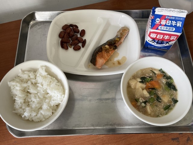 2月9日 今日の給食 公開日 2026/02/10 更新日 2026/02/10 今日の給食 今日のメニューは「ご飯」「牛乳」「あんかけ豆腐」「鮭のネギだれ」「金時豆」でした。あんかけ豆腐は新メニューでした。 いいね(0)
