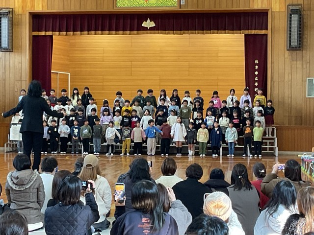 1年生の最後の参観は、オペレッタ「くじらぐも」の発表でした。練習の成果を十分に出せました。とても迫力があり、可愛いオペレッタに仕上がりました。