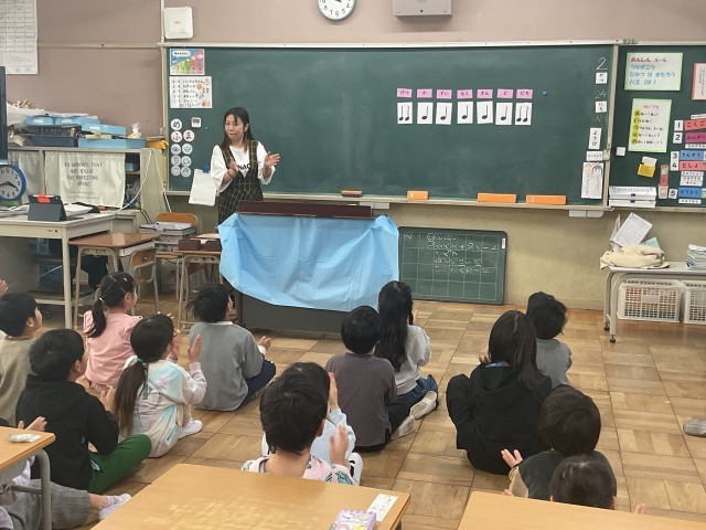 1年生が音楽の授業で童歌を学習しています。友達と楽しく「ずいずいずっころばし」!