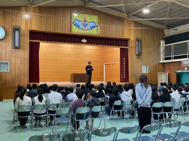 5年生が準備してくれた卒業式場を使って6年生が卒業式の練習を始めました。