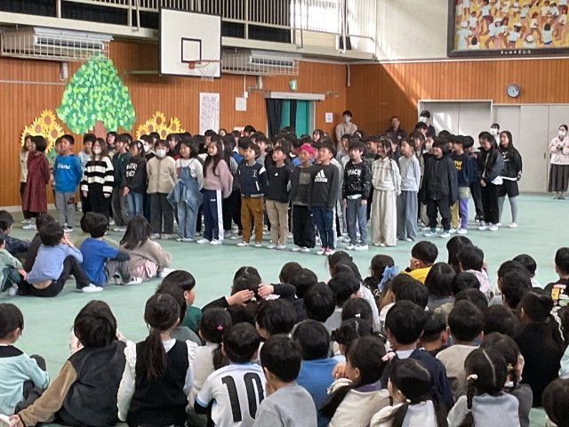 4年生が司会運営を務めてくれます「6年生を送る会」が開催されました。とても温かみのある素敵な会になりました。