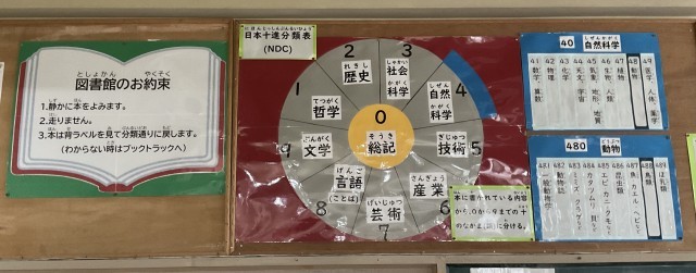 本校では、隔週で学校司書が勤務しています。学校図書館がより利用しやすくなるよう工夫されています。