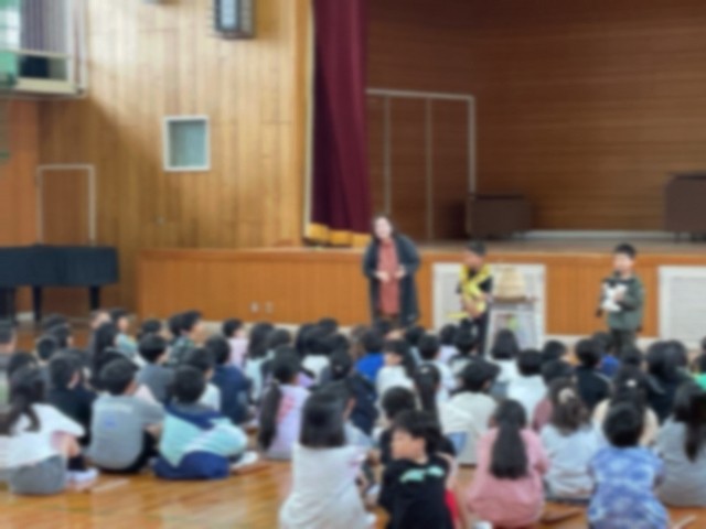 体育館で講師の方に来ていただき、3年生のリコーダー講習会を行いました。3年生の音楽の授業ではじめてリコーダーを使用します。