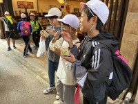 集会後の20分休憩の時に校長室前の新聞を見に来た児童がいました。