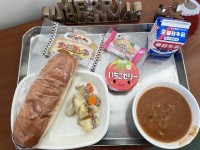 今日のメニューは、「ごはん」「牛乳」「団子じる」「牛ごぼう」「青梗菜の炒め物」でした。