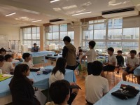 4年生のダンス練習です。手にバンダナやハンカチなど大きめの布を持って踊っていま...