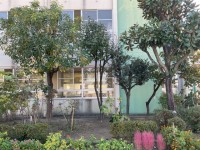 鬱蒼と茂っていた東門横の花壇の木々を校務員さんたちが一日かけて剪定していただき...