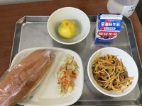 今日のメニューは「コッペパン」「牛乳」「焼きそば」「にんじんのナムル」「梨ゼリ...