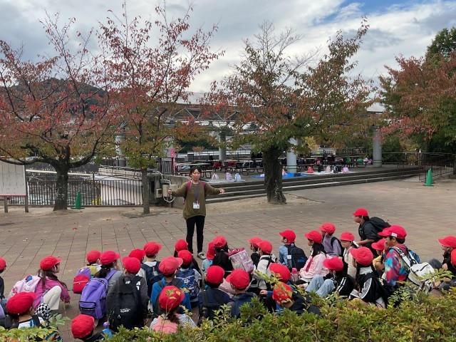 京都市動物園に到着しました。これからグループごとに分かれて、園内を見て回ります。どんな動物がいるのか、子どもたちは興味津々です。