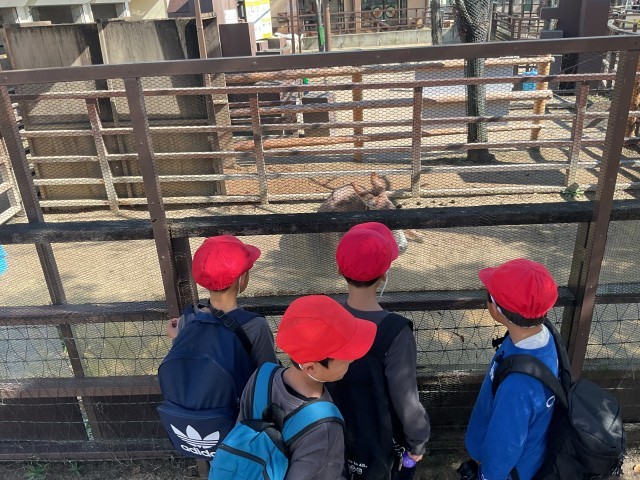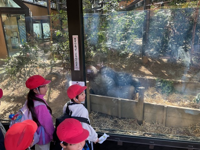 お弁当の後に時間があったため、もう一度園内を見て回りました。午前中に見れなかったところや同じところを見ました。同じところでも、「さっき見た時とは違う場所にいる!」や「ゴリラが横になって寝ている!」と色々な気づきがありました。