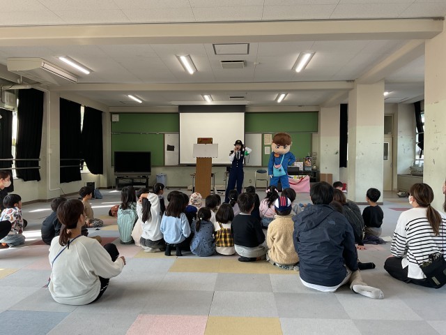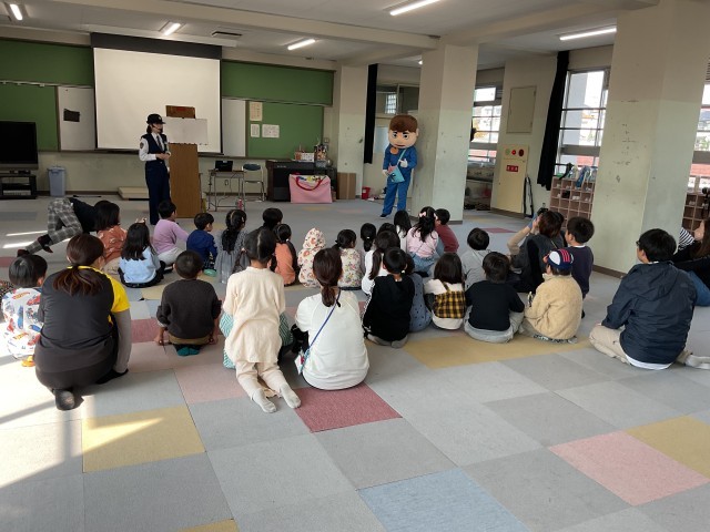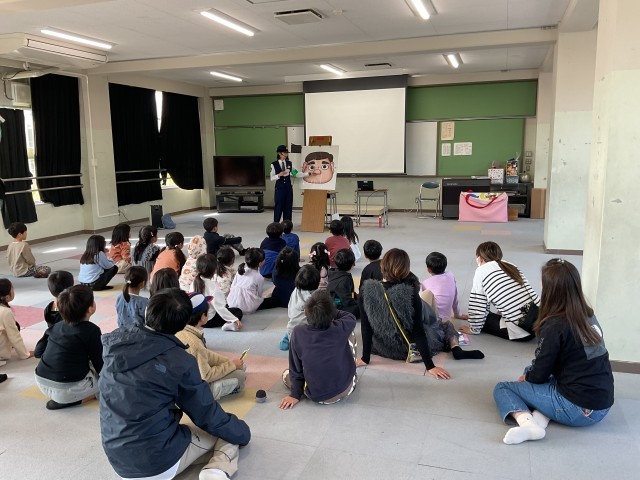警察の方に来ていただき、1年生に誘拐防止教室を行いました。