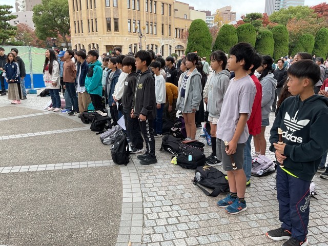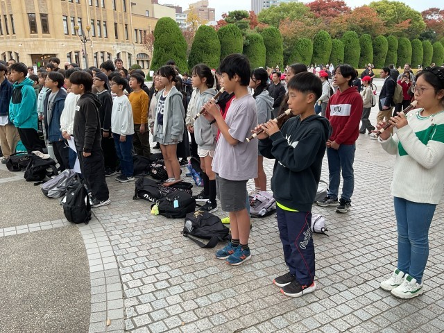実行委員さんを中心に、平和の誓いを宣言し、「ヒロシマの有る国で」を歌いました。