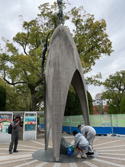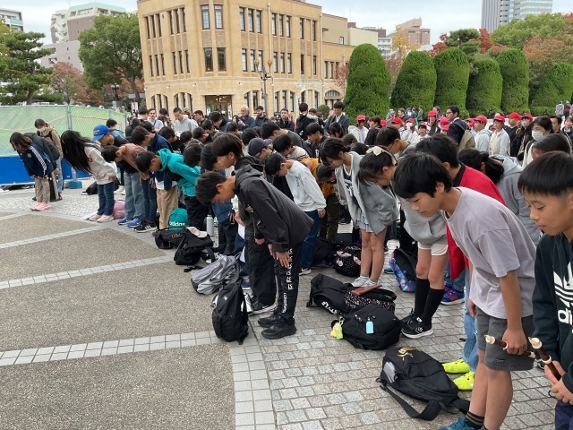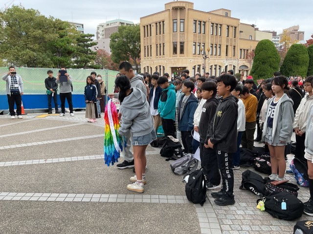 最後に、長尾小学校全員で折った千羽鶴を捧げました。