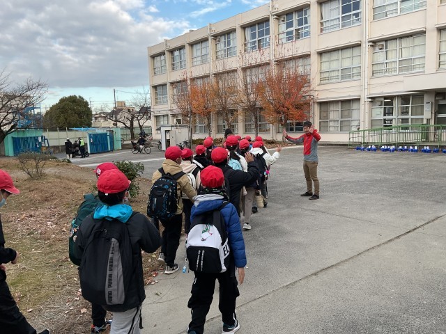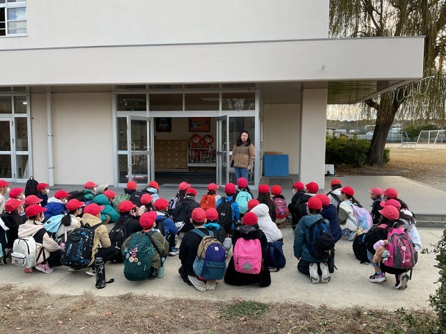 4年生の校外学習の日です。少し寒さが気になりますが、元気に出発しました。