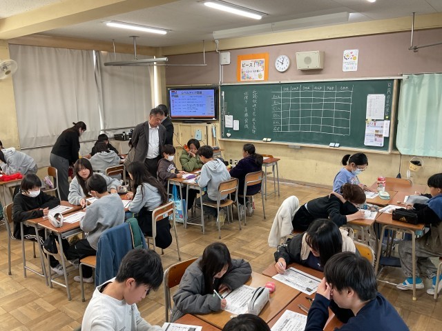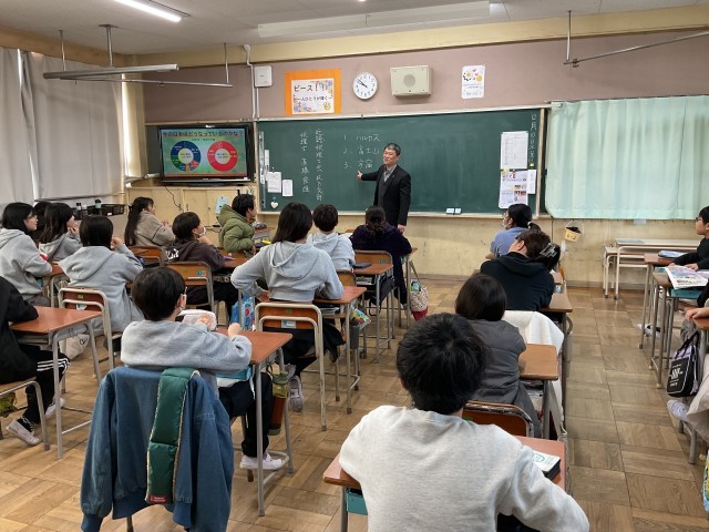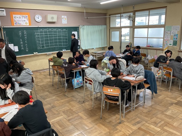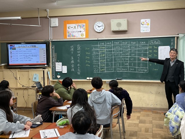 近畿税理士会枚方支部の税理士の方に来ていただき、6年生の各クラスで租税教室が行われました。税金とは「私たちの生活を支えてくれるものに使われており、安心・安全な暮らしのためになくてはならないもの」ということを学んだ後、税金について体験型の学習に移りました。グループごとに行われましたが、それぞれのグループで話し合いを進めながら、グループでの考えを発表しました。